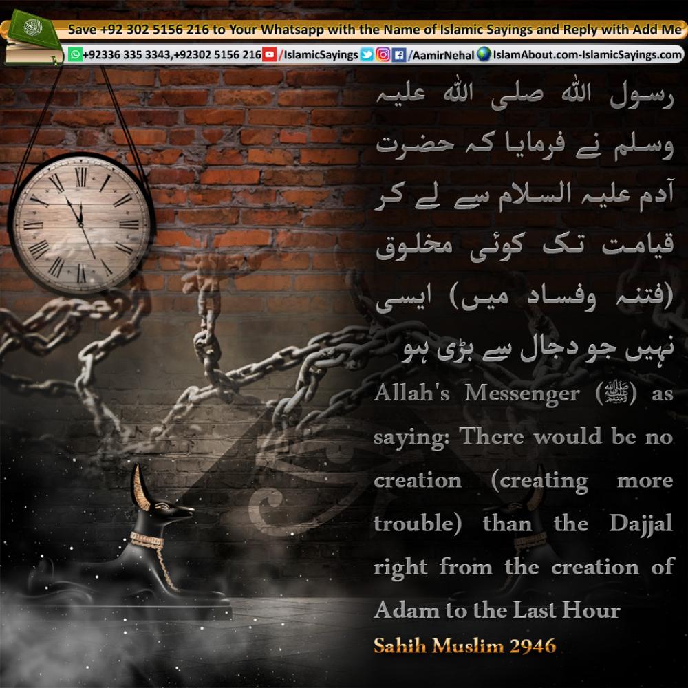 Abu Qatada reported: We used to go to Imran b. Husain passing in front of Hisham b. 'Amir. He, one day, said: You pass by me (in order) to go to some persons, but (amongst the living persons) none remained in the company of Allah's Messenger ( صلی اللہ علیہ وسلم ) more than I and none knows more ahadith than I. I heard Allah's Messenger ( صلی اللہ علیہ وسلم ) as saying: There would be no creation (creating more trouble) than the Dajjal right from the creation of Adam to the Last Hour.