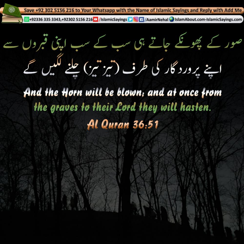And the Horn will be blown; and at once from the graves to their Lord they will hasten.