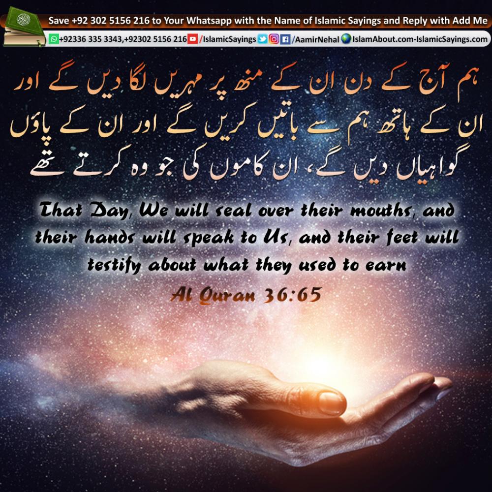 That Day, We will seal over their mouths, and their hands will speak to Us, and their feet will testify about what they used to earn.