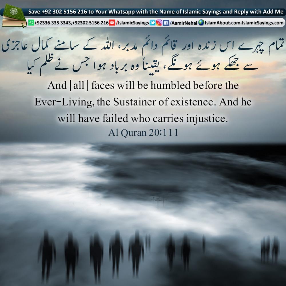 And [all] faces will be humbled before the Ever-Living, the Sustainer of existence. And he will have failed who carries injustice.