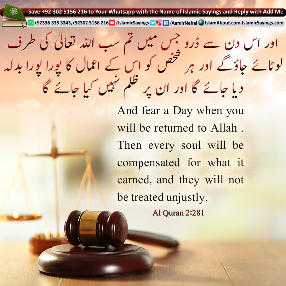 And fear a Day when you will be returned to Allah . Then every soul will be compensated for what it earned, and they will not be treated unjustly.