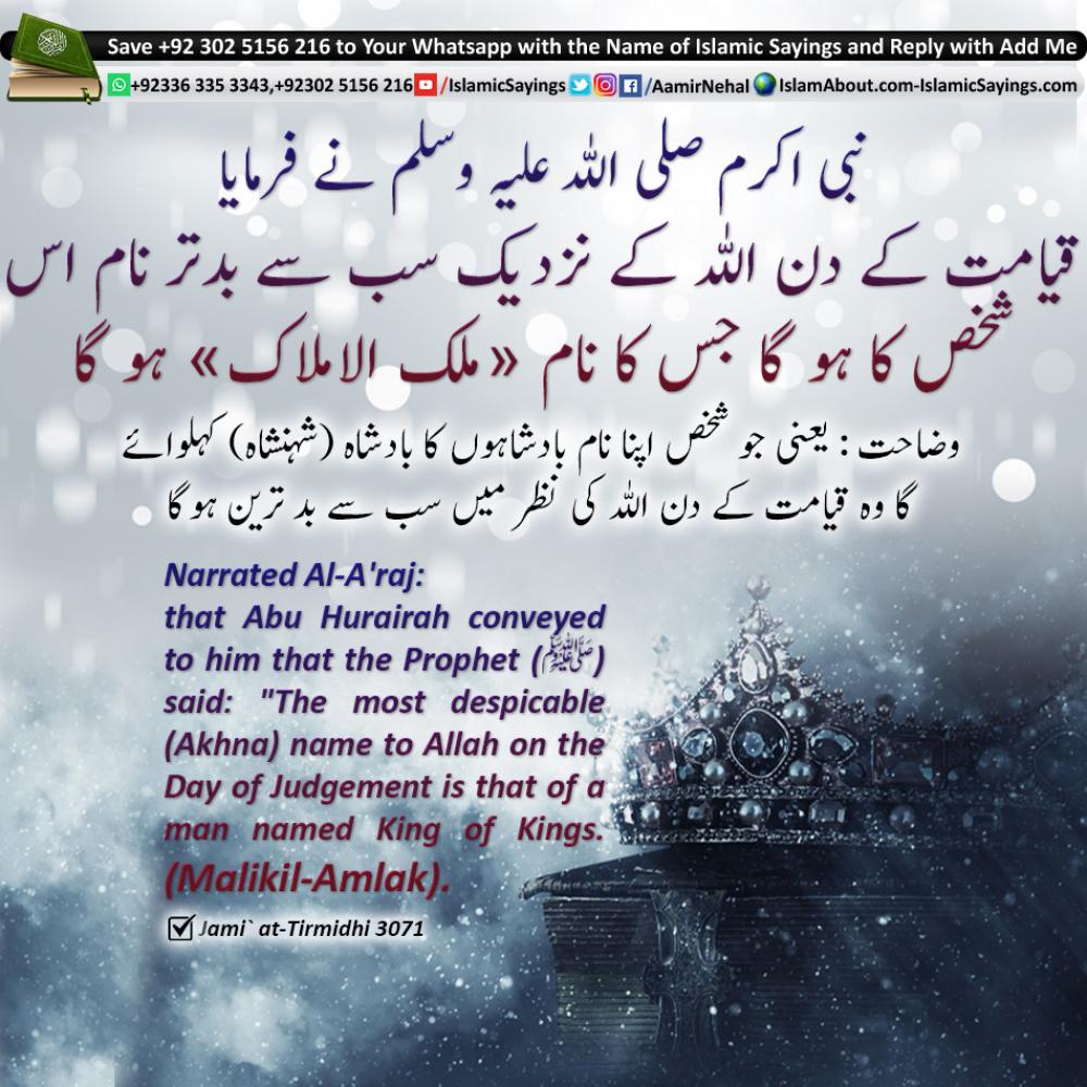 Narrated Al-A'raj: that Abu Hurairah conveyed to him that the Prophet (ﷺ) said: The most despicable (Akhna) name to Allah on the Day of Judgement is that of a man named King of Kings. (Malikil-Amlak).