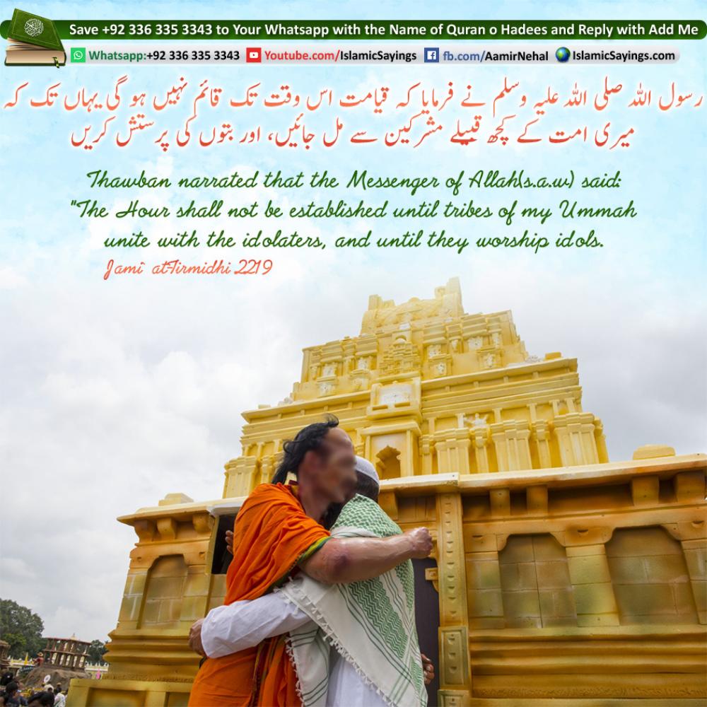 Thawban narrated that the Messenger of Allah(s.a.w) said: The Hour shall not be established until tribes of my Ummah unite with the idolaters, and until they worship idols. And indeed there shall be thirty imposters in my Ummah,each of them claiming that he is a Prophet. And I am the last of the Prophets, there is no Prophet after me.